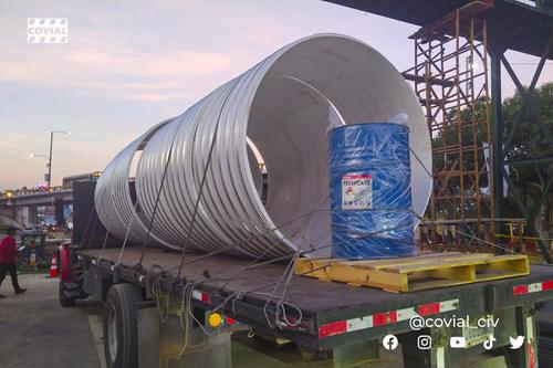 La Unidad Ejecutora de Conservación Vial (Covial) del Ministerio de Comunicaciones explicó que los trabajos de fundición del colector avanzaron durante la noche del miércoles 20 de julio.