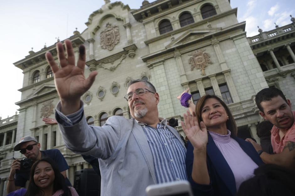El festejo se realizó en la Plaza Central, en la zona 1 de la Ciudad de Guatemala, a donde decenas de personas acudieron para festejar que Arévalo y Herrera hayan logrado el segundo lugar en las votaciones.