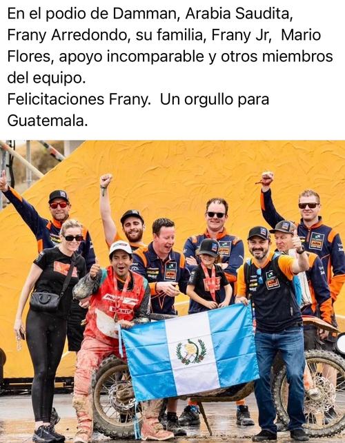 "Frany" Arredondo concluyó la difícil competencia en el desierto de Arabia Saudita: el Dakar poniendo en alto el nombre de Guatemala.