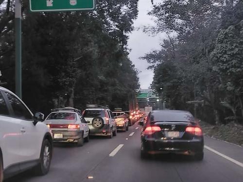 El congestionamiento es complicado desde la Ciudad de Guatemala, principalmente en la Cuesta de las Cañas donde los autos se manejan lentamente.