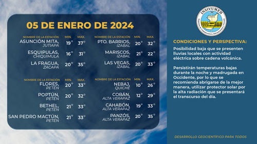 El Insivumeh informa sobre las condiciones del clima para este viernes 5 de enero.