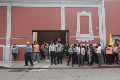 En zona 1 capitalina, trabajadores del Palacio Nacional de la Cultura y otros edificios y oficinas también salieron a las calles para protegerse.