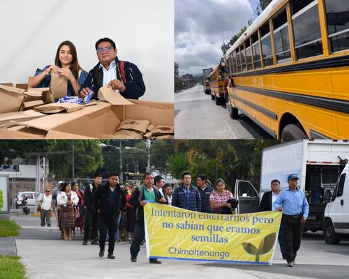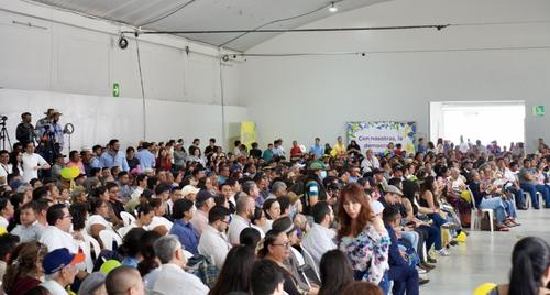 Varios buses que trasladaron a vecinos de diferentes departamentos se estacionaron a las afueras del Parque de la Industria, en la zona 9 capitalina, donde se celebró la actividad. Además, cada uno de los presentes recibió una refacción.