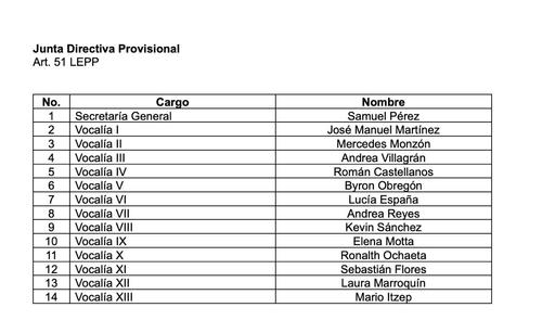 Con el encuentro de este día, se inició el proceso para conformar legalmente al partido y quienes están a cargo de ello son los siguientes actores:
