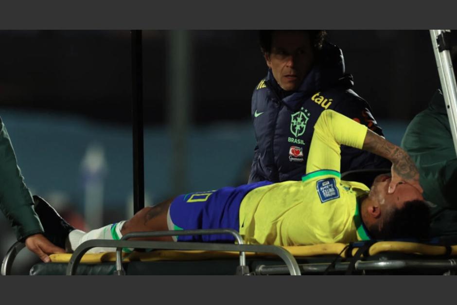 Neymar dejó el campo antes del descanso, llorando y en camilla, tras caer al suelo luego de un choque con el mediocampista uruguayo Nicolás De la Cruz.