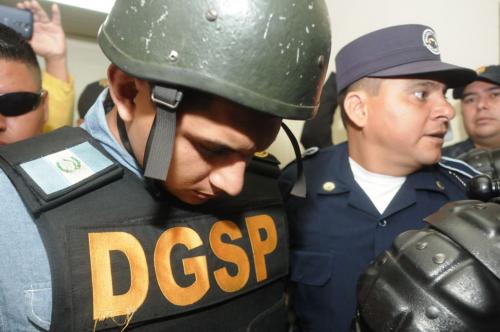 Meda fue movilizado en un auto blindado de la Dirección General del Sistema Penitenciario (DGSP) con un fuerte dispositivo de seguridad desde el Centro Preventivo de la zona 18, casco y chaleco antibalas.