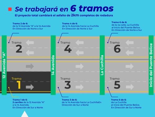 La primera fase del proyecto consiste en la intervención del primer tramo comprendido entre la 12 avenida "A" y la 14 avenida de la zona 6, en sentido de sur a norte.