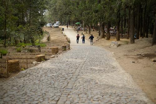 Tras caminar unos 150 metros de terracería, los visitantes se dirigen por un camino empedrado hacia el nuevo parque.