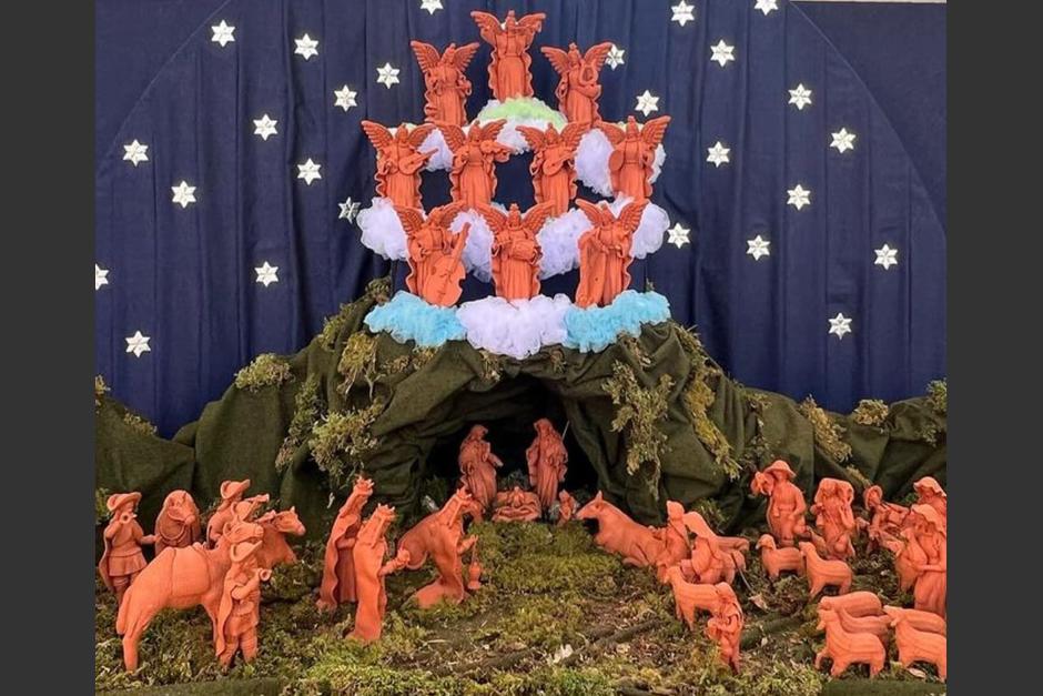En el caso del nacimiento guatemalteco, este fue creado con diversas imágenes hechas con barro. María, José y el niño Dios están acompañados por ángeles, pastores y los tres Reyes Magos, sin faltar la mula y el buey.