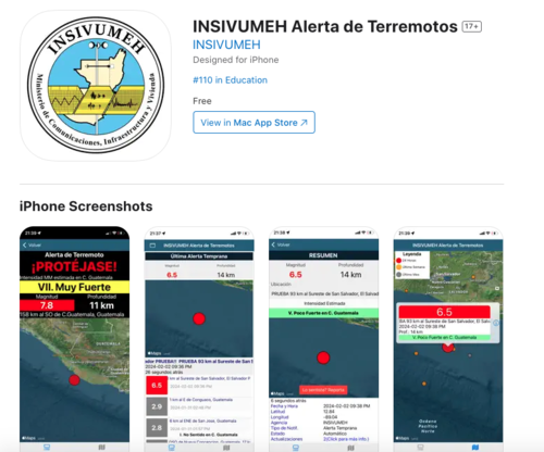Se trata de la aplicación móvil Alerta Temprana, del Instituto Nacional de Sismología, Vulcanología, Meteorología e Hidrología (Insivumeh), que alerta de 15 a 30 segundos antes de que se registre un sismo.