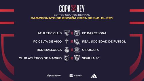 Por su parte, el FC Barcelona, que derrotó a un equipo de tercera división en la ronda de octavos de final, visitará al Athletic Club de Bilbao, que actualmente se encuentra en el tercer lugar de La Liga.