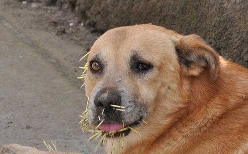 Tres perros se enfentaron contra un puercoespín y perdieron la batalla.