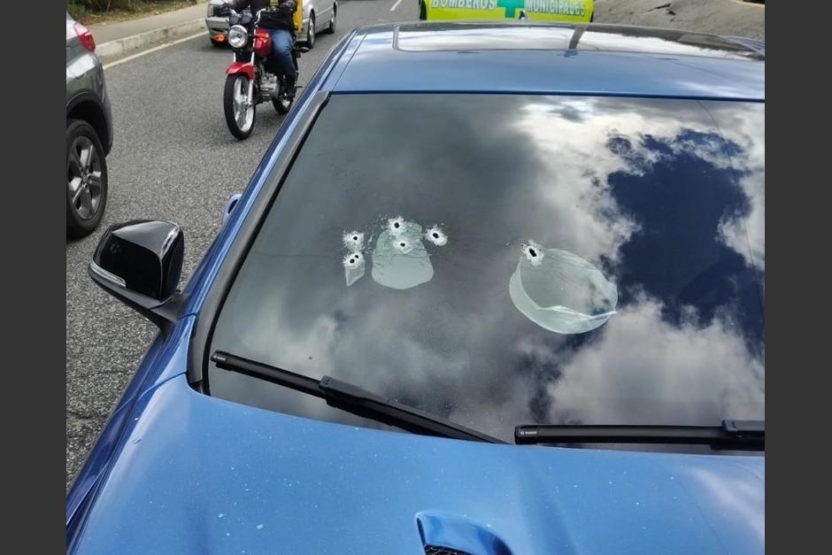 Así quedó el vehículo que fue atacado en medio del tránsito en la zona 16, este 12 de diciembre.