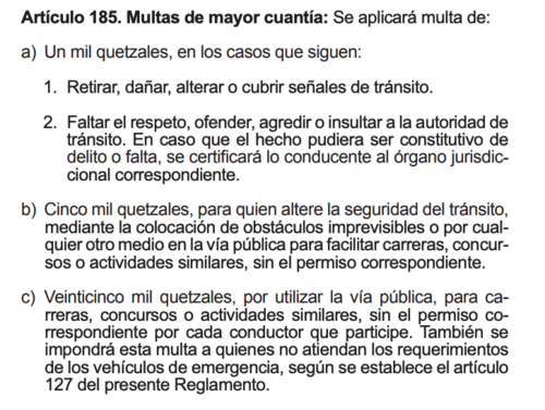 Este tipo de acciones están prohibidas según la Ley y Reglamento de Tránsito, donde establece una multa de Q5 mil por alterar la seguridad del tránsito, según el artículo 185 inciso "b" de la normativa.