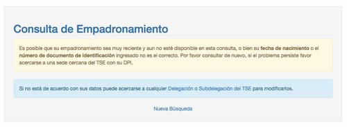 En otro caso, si tu empadronamiento es muy reciente, es posible que no obtengas resultado en la búsqueda y te aparezca un mensaje como este: