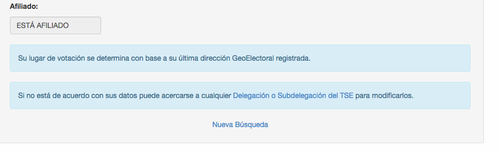Entre los resultados, puede que aparezcas afiliado a un partido sin saberlo. En ese caso, deberás acercarte a la delegación o subdelegación del TSE más cercana para modificar tus datos.