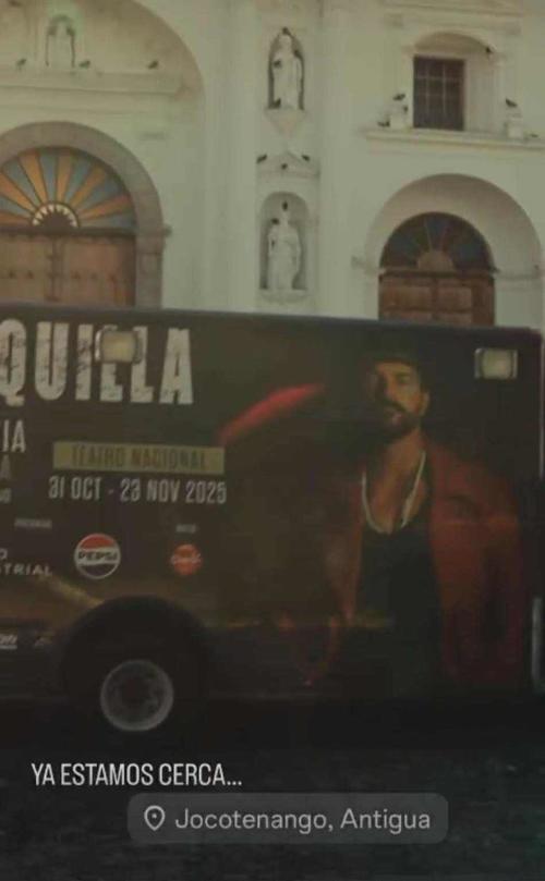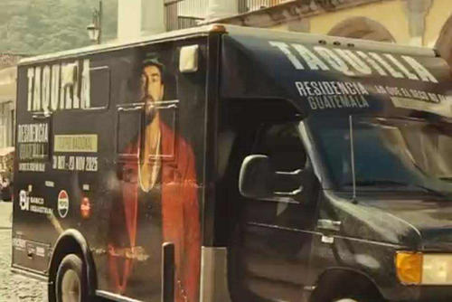 A través de las redes de Showbusiness se muestra el camioncito adornado con la fotografía del cantautor guatemalteco, recorriendo las calles de Antigua.