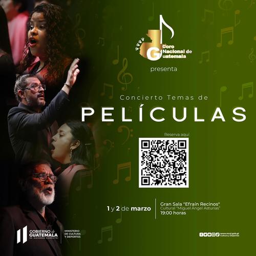 Se trata del concierto que ofrecerá el Coro Nacional de Guatemala donde interpretará Temas de Películas, en el que hará un recorrido por las canciones más representativas para todos los gustos.