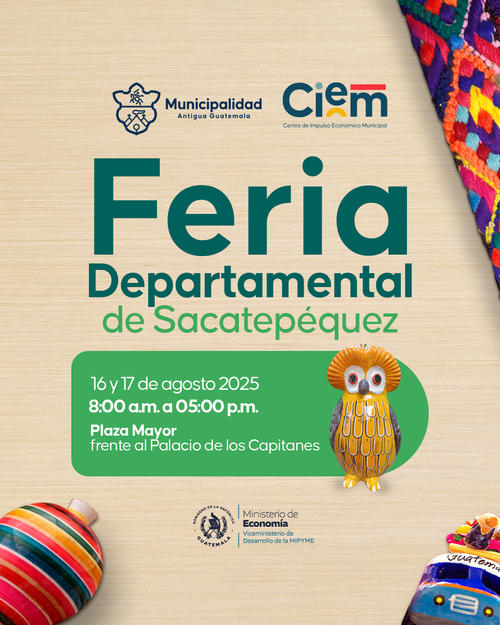 El evento se llevará a cabo el 16 y 17 de agosto, de 8:00 a 17:00 horas en la Plaza Mayor, frente al Palacio de los Capitanes de Antigua Guatemala.