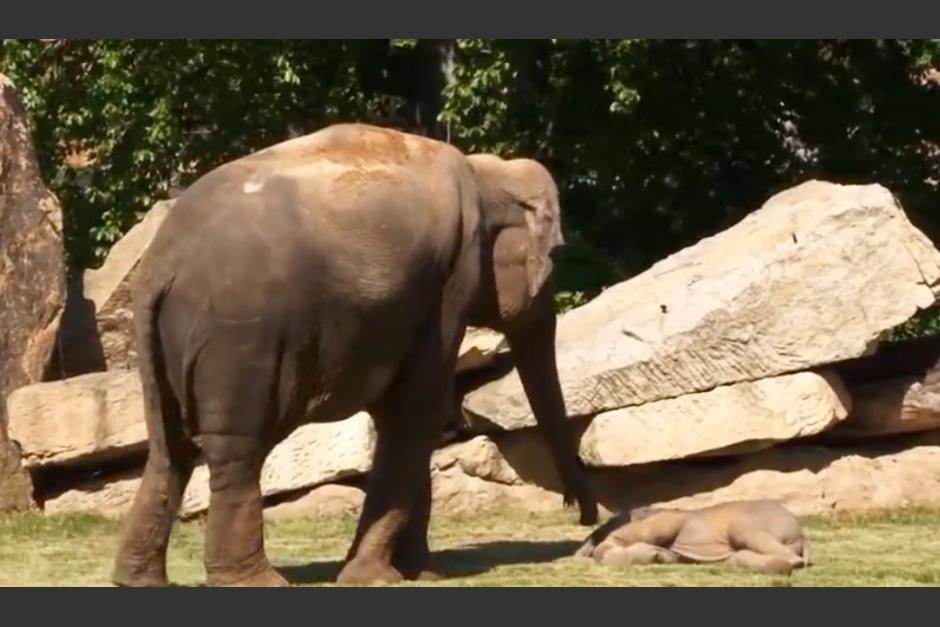El clip muestra cómo la madre acude a sus cuidadores para que la ayuden a levantar a su bebé, quien toma una profunda siesta cerca de su progenitora.