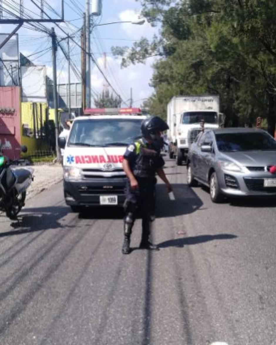 Los bomberos Voluntarios trasladaron a un hombre al hospital de accidentes del IGSS 7-19. La otra persona quedó fallecida en el lugar. El hecho armado complica el tránsito en el sector, reportó Pablo Morales de la Policía de Tránsito de Mixco.