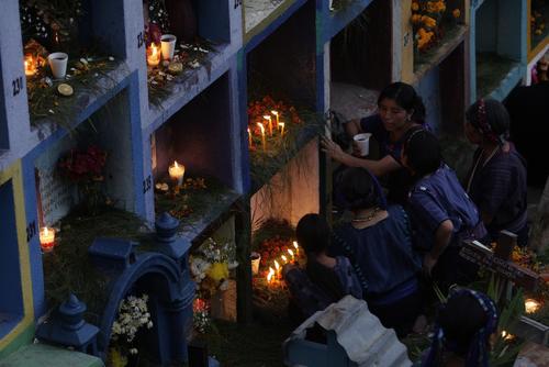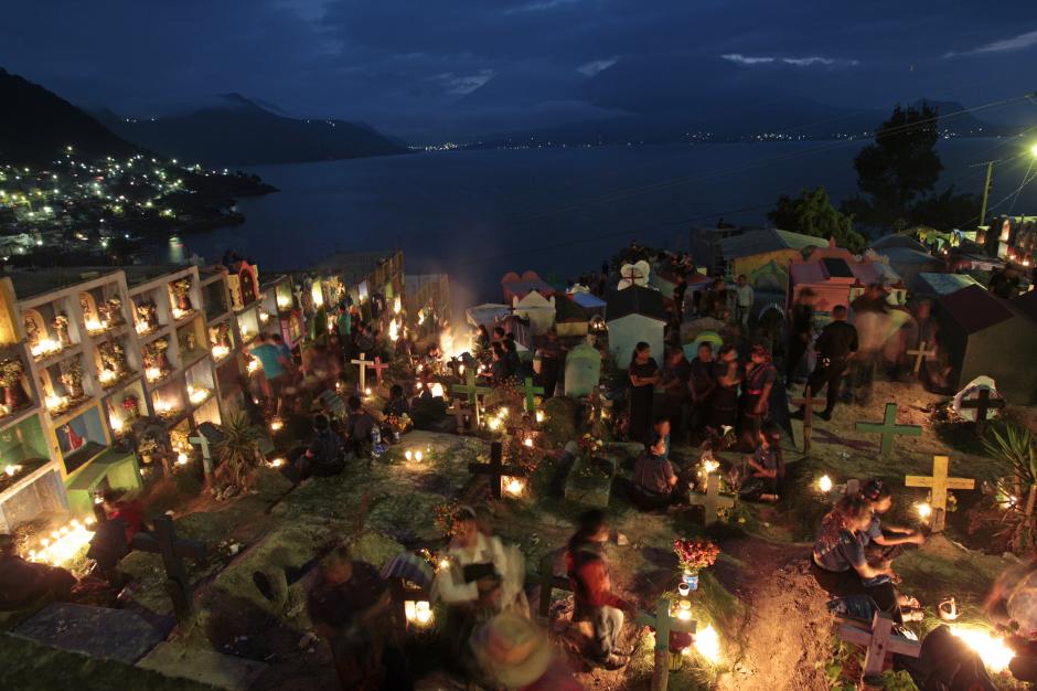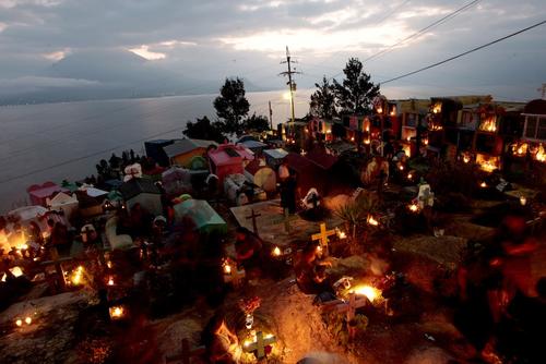 Al atardecer del domingo 1 de noviembre, día de Todos los Santos, los pobladores de San Antonio Palopó, en el departamento de Sololá, suben al Cementerio General de su población con velas para rezar frente a la tumbas de sus seres queridos.