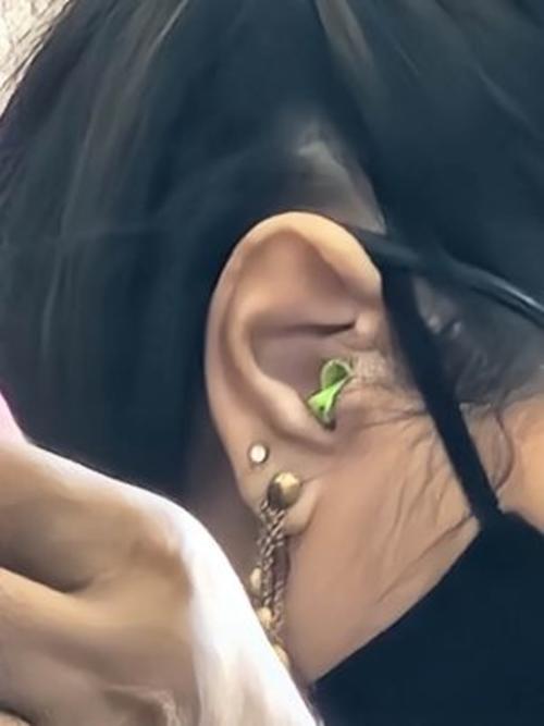 Baldetti fue vista con un artículo en los oídos, que hasta el momento se desconoce si son audífonos o tapones, pero los cuales se colocó durante la audiencia.