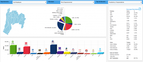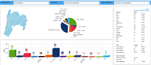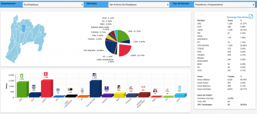 En Suchitepéquez, en donde faltan 88 mesas por contabilizar, y se debe a tres municipios: San Antonio Suchitepéquez, con 37 mesas, y San Francisco Zapotitlán, con 28 mesas.