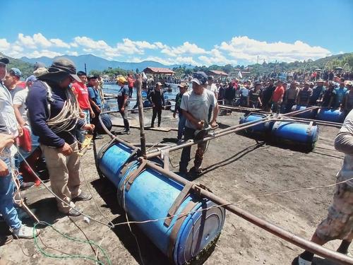 Pobladores del municipio de Santiago Atitlán, junto a sus autoridades ancestrales, realizaron este miércoles 23 de julio una jornada de retiro de jaulas de tilapia instaladas en el lago de Atitlán.