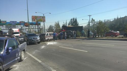 Las autoridades investigan un aparatoso accidente de tránsito en el Periférico, con dirección al centro de la ciudad, en el que una conductora volcó su automóvil y quedó inconsciente.