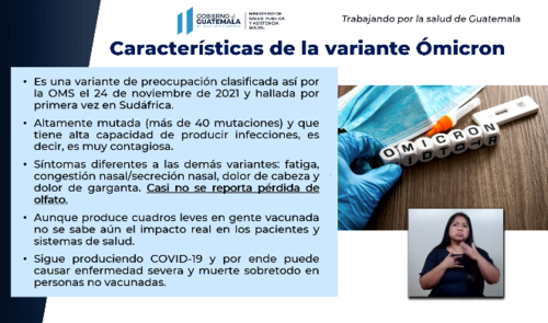 El Ministerio de Salud informó que la variante Ómicron es la que más presencia tiene en Guatemala siendo ya la dominante respecto de otras cepas del Covid-19. Sin embargo, los síntomas de esta son diferentes a los de la variante Delta y otras.