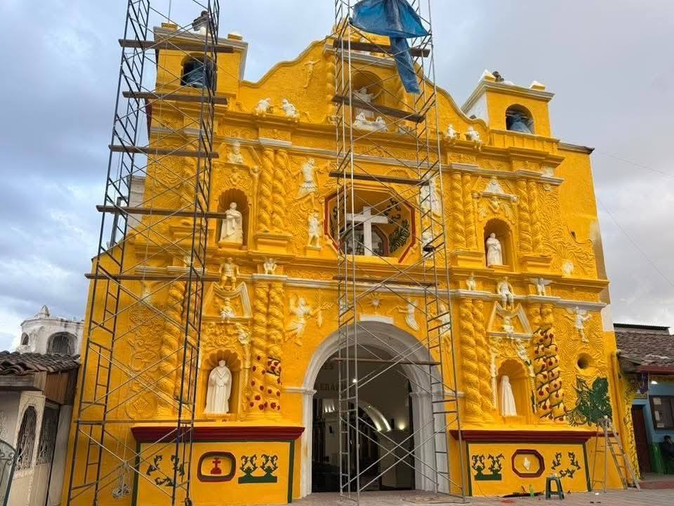 La comunidad católica de ese municipio de Totonicapán aprobó que se realice un cambio de pintura al templo, el cual fue cubierto en un principio de pintura blanca.