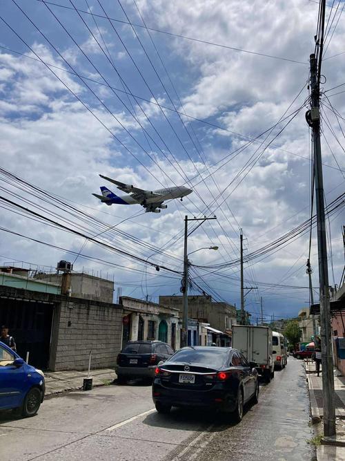 El Boeing 747, matrícula de Islandia TF-AMM, entró por la ciudad, sobrevolando por la zona 3 de Mixco hasta llegar a La Aurora, para luego alinearse en la pista 2.