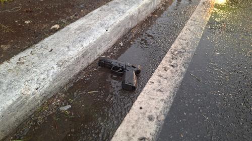 Dos armas quedaron abandonadas en la vía pública tras la balacera registrada a las 5:58 horas de este viernes 9 de mayo en la 20 calle y 15 avenida de la zona 12 capitalina.