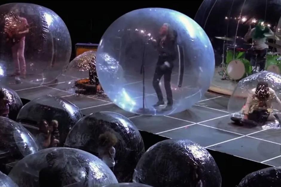 Coyne, vocalista de la banda, suele introducirse en una esfera inflable transparente para rebotar sobre el público, pero esta vez fue más allá y otorgaron a cada asistente una burbuja para que todos acaten el distanciamiento social.