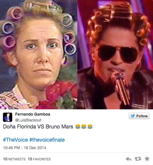 Bruno Mars encendió la competencia “The Voice” con su interpretación de “Uptown Funk”. Pero, sin duda, lo que más sorprendió a los espectadores fue su "look" muy parecido al personaje de “Doña Florinda” de “El chavo del 8”.