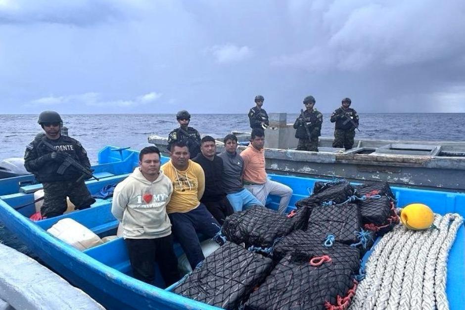 El cargamento de droga iba "en una embarcación con tres guatemaltecos y dos ecuatorianos", informó Bukele. En su publicación compartió imágenes de los detenidos, junto con la cocaína que llevaban.