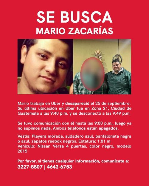 Mario Zacarías trabaja ofreciendo servicio de transporte por aplicación y desde el 25 de septiembre no se había sabido nada de él.
