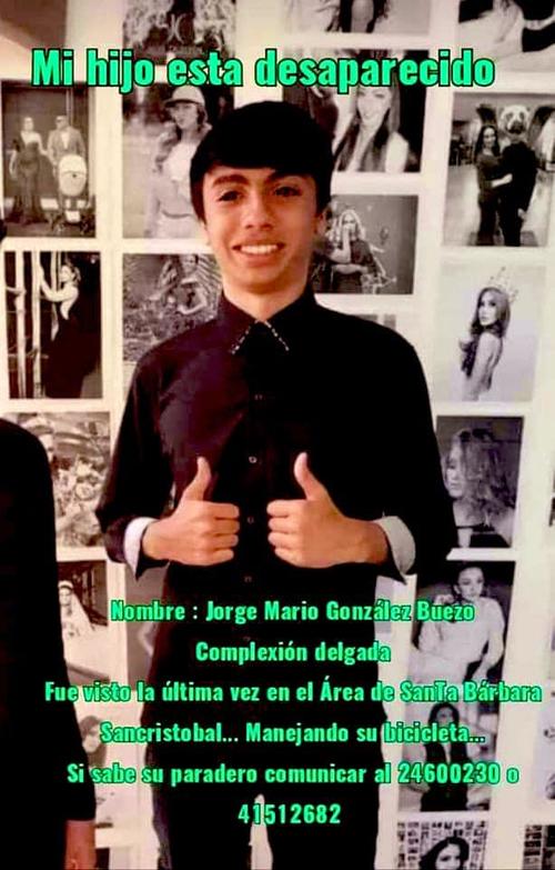 Cualquier información de Mario González Buezo pueden llamar al 110 de la Policía Nacional Civil, al 2411-9191 del Ministerio Público o al 125 de la Cruz Roja Guatemalteca.
