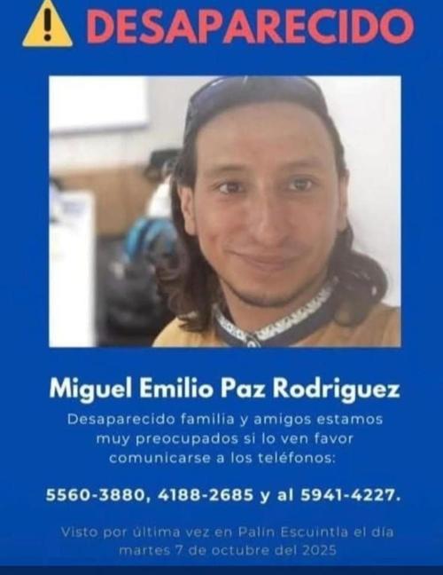 Miguel Emilio Paz fue reportado como desaparecido el sábado 11 de octubre ya que su familia dejó de saber de él desde el martes 7.