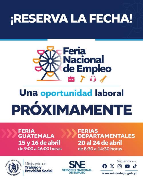 El Ministerio de Trabajo realizará la primera Feria Nacional de Empleo de este 2026.