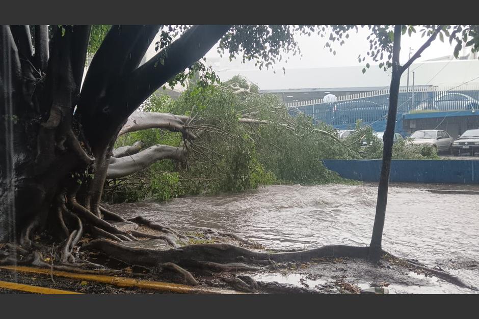 Un árbol de grandes dimensiones cayó en la 10ª avenida y 32 calle de la zona 5 de la Ciudad de Guatemala, tras las fuertes lluvias.