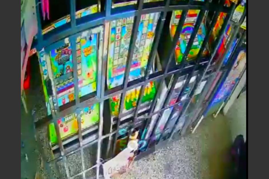 Las cámaras de seguridad de un negocio ubicado en la zona 1 captaron el momento en que tres hombres ingresaron al local y se robaron máquinas tragamonedas.