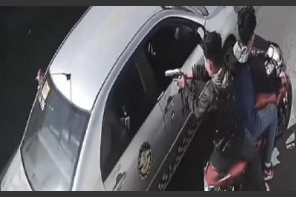 Una cámara de seguridad captó el momento en que dos sicarios atacan al pasajero de un taxi de Santa Catarina Pinula.