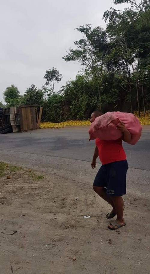 Varias familias acudieron al lugar del accidente para llevarse las naranjas que podían, algunos incluso llevaron costales para que el botín fuera mayor.