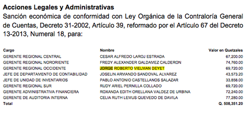 A criterio del ente fiscalizador, esa fue una falta ya que la autonomía de la SAT no permite dejar de lado a la CGC y debió estar presente. Por esta anomalía, Vielman Deyet fue multado por 69 mil 720 quetzales.