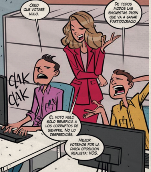 También hace un llamado a votar por Vos y no votar nulo porque "solo beneficia a los corruptos de siempre".