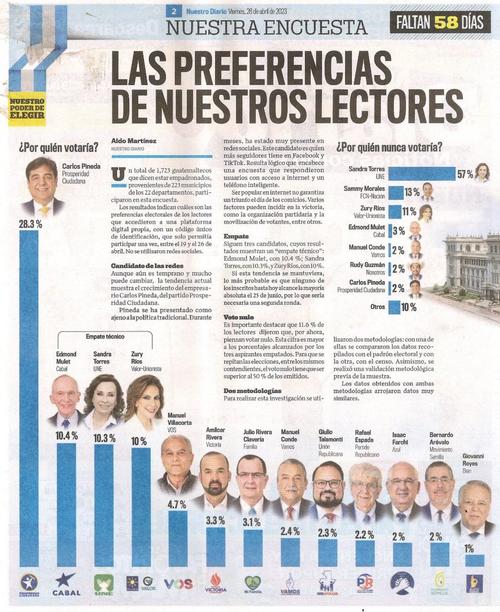 Prensa Libre publicó este jueves 22 de junio los resultados de su encuesta de intención de voto.