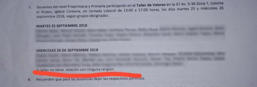 El caso de la capacitación que recibieron los maestros de Sacatepéquez será objeto de una investigación interna para verificar el sesgo religioso y determinar responsabilidades.
