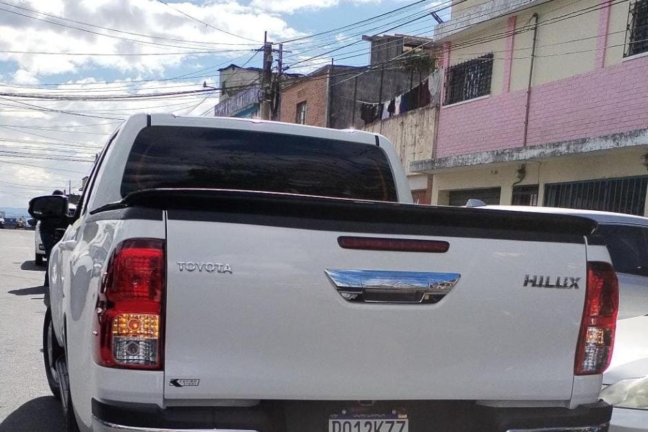El vehículo que había sido robado fue interceptado y recuperado. Se trata de un picop con placas P-012KZZ, de color blanco y de marca Toyota, de modelo 2025.
